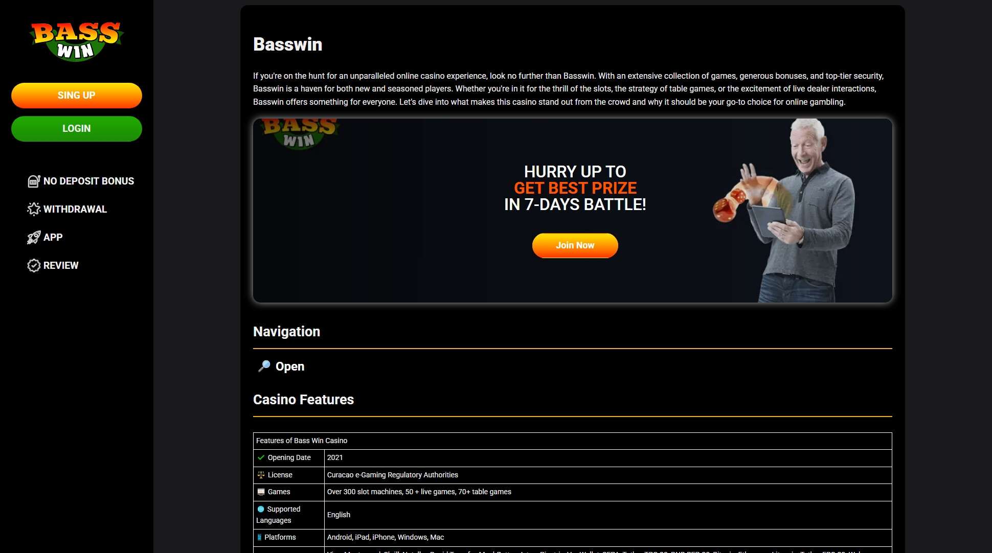 - Aposta Mínima/Máxima: 0,1-100 euros